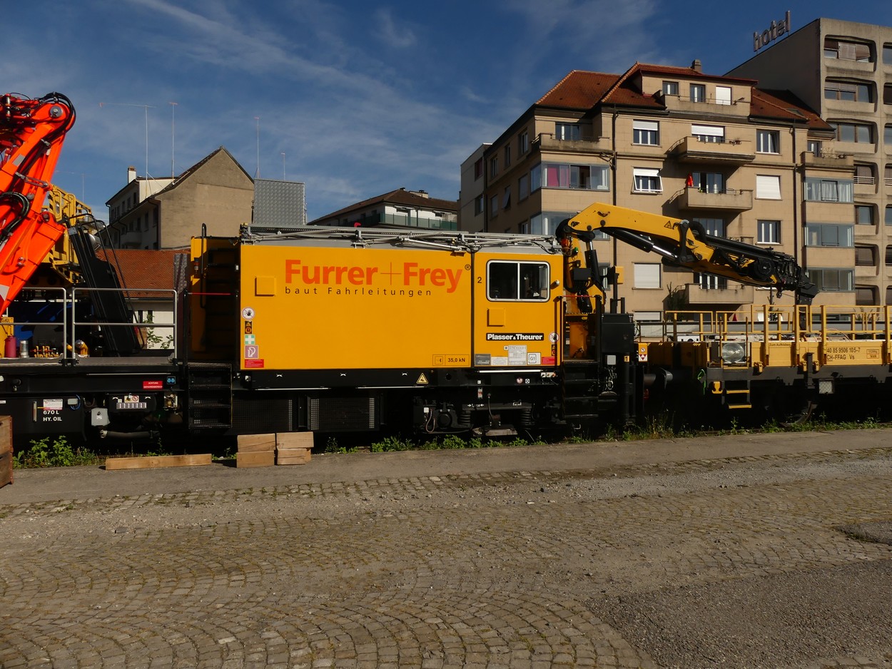 voici un engin que je n'avait encore jamais vu, un véhicule d'entretien des caténaires de l'entreprise Furrer et Frey