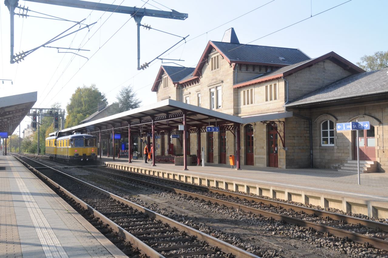 Voici le GLEISMESSWAGEN  725 002-0  en gare de Pétange (Luxembourg).