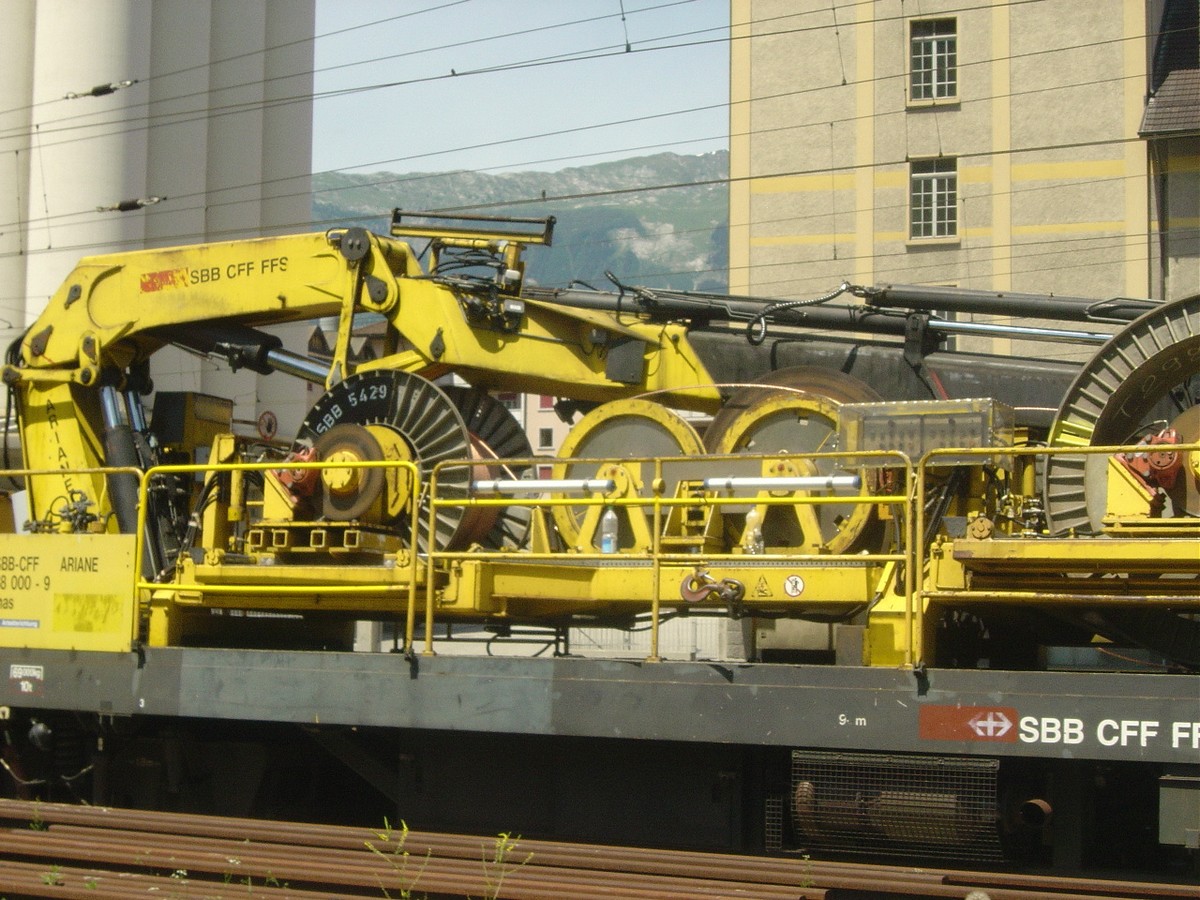 la voici à Sion en 2007. je n'ai pas de photos récente. Elle est utilisée avec plusieurs engins nacelles pour renouveler les caténaires ou en poser de nouvelle sur des distances souvent très longues.