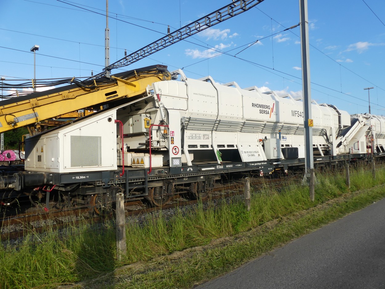 Voici un MFS 40-8 à six essieux de Plasser&Theurer à Rombherg Sersa Rail Group