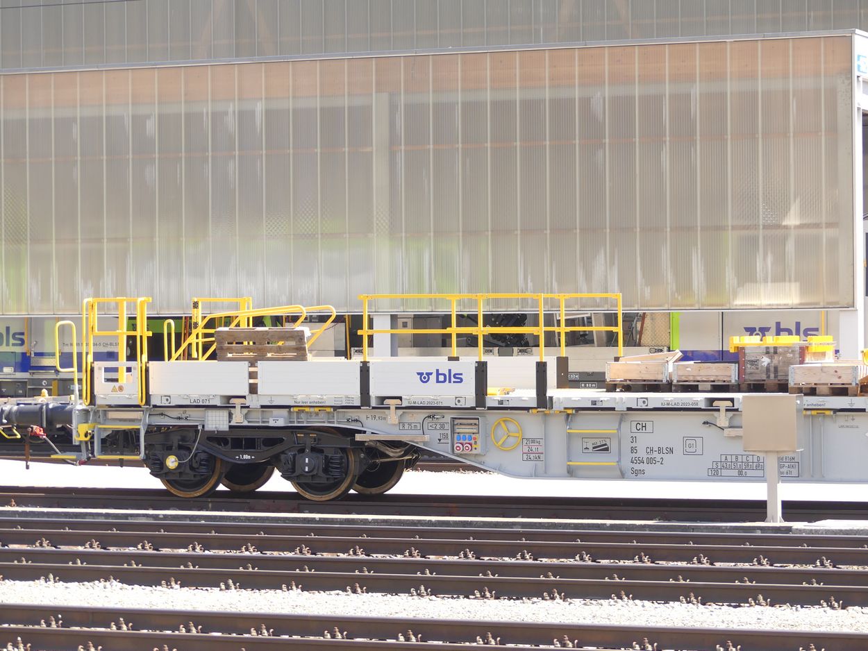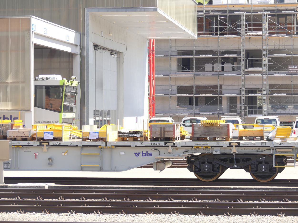 le BLS a fait l’acquisition de plusieurs wagon porte-conteneur pour les travaux. Ces derniers ont gardé leurs immatriculations cargo.