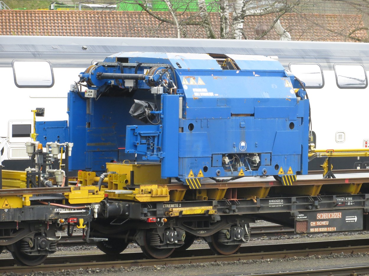 c'est un wagon utilisé jusqu'ici pour le transport des traverses du tunnel de base du Gothard que Scheuchzer à modifier pour le transport de portique.