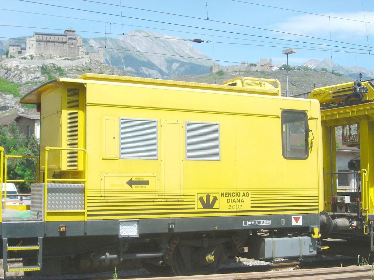 Voici le wagon nacelle DIANA qui accompagne souvent ARIANE sur les chantiers de caténaire.