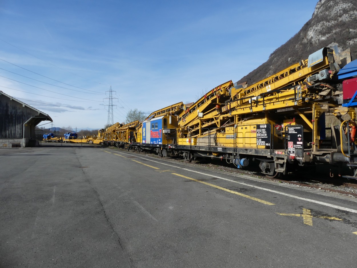 Autre question ! Le concassé semble être transporté par des bennes. Me trompe-je ? Si oui, je suppose que des wagons plats sont chargés de ces bennes et que les portiques vont chercher les pleines, les vident, les ramènent sur les plats, en prennent une pleine et ainsi de suite, de la même façon qu'il existe des palettes de traverses pour les RVB.