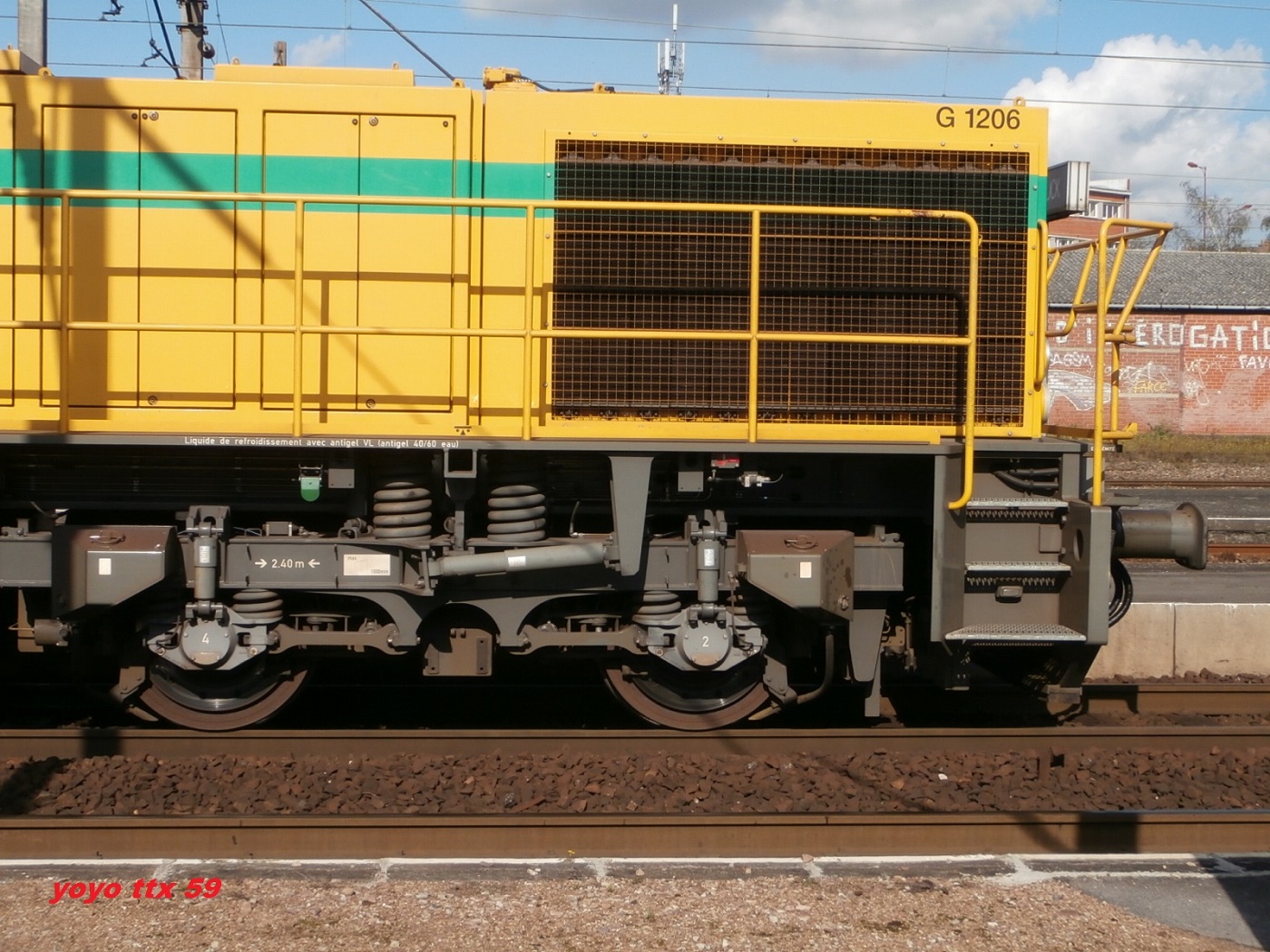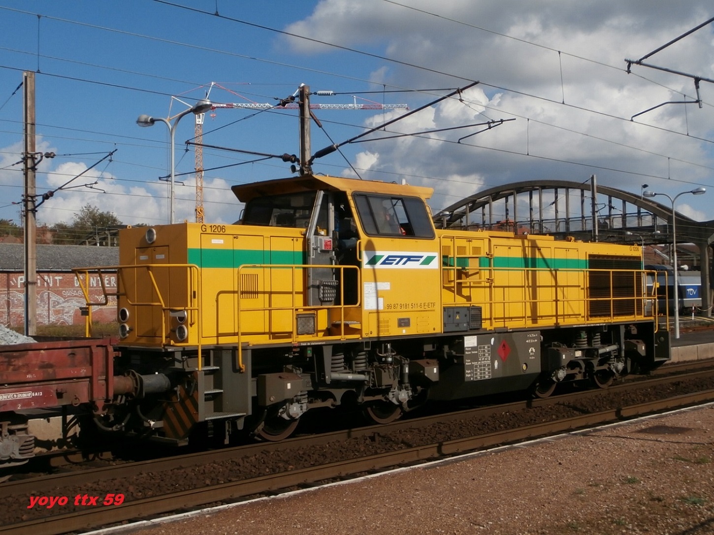 Voici une G 1206 ETF prise sur le triage d'Hourcade. Par contre comme la photo est floue je n'arrive pas à voir le numéro. Quand je compare aux autres photos du site, il y a quelques différences. Portes drapeaux gris, numéro UIC sur la cabine ...