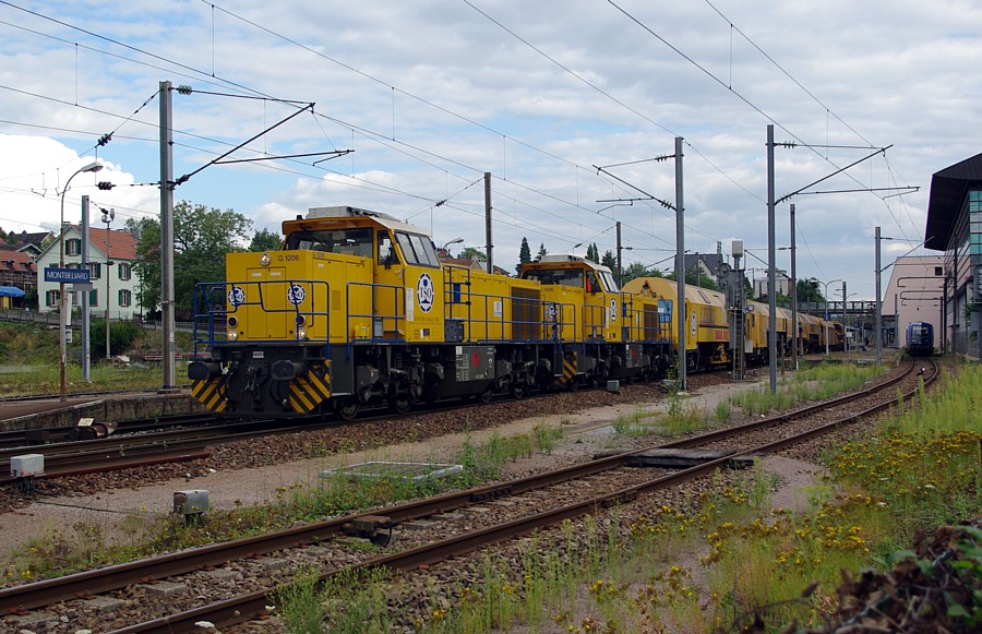 25/07/2011, Montbéliard, train infra pair, engins TSO et SCHEUCHZER.