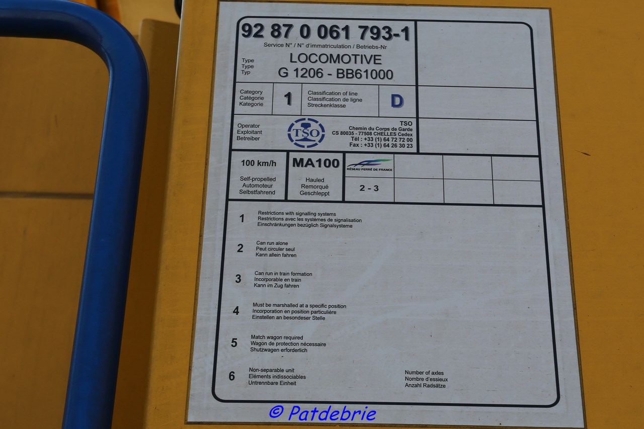Numéro du constructeur Vossloh G 1206 BB 5702093 (mise en service 00-08-2015) 61793 TSO