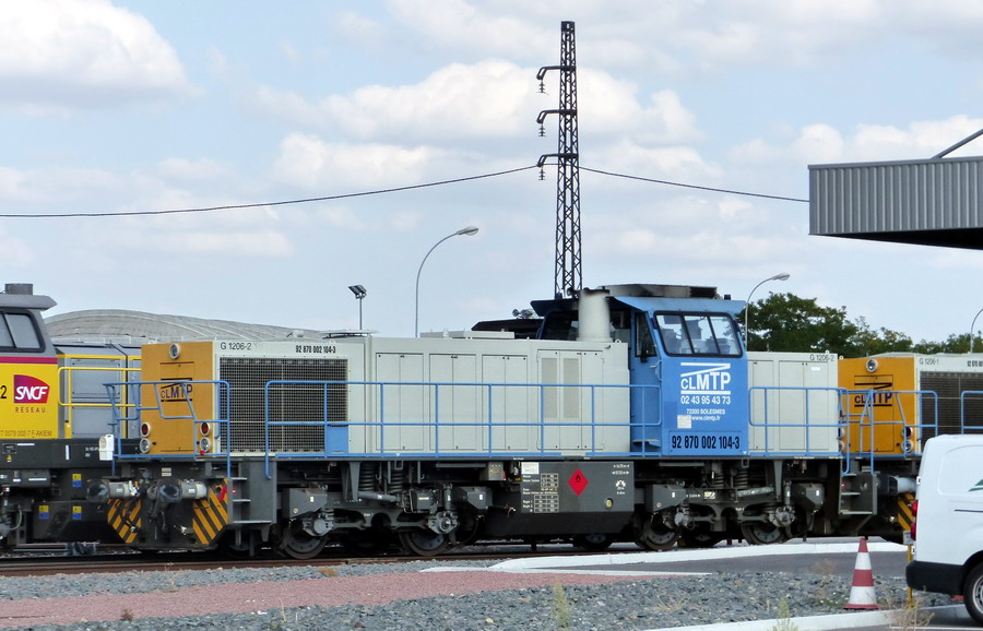 La voici sur le site de maintenance IMATEQ à Saint Pierre des Corps le 21 septembre 2019 avec son nouveau n° d'EVN 92 870 002 104-3 et en queue la G 1206 BB 5001888 - 92 870 001 888-2 ex 99 87 9 181 521-9