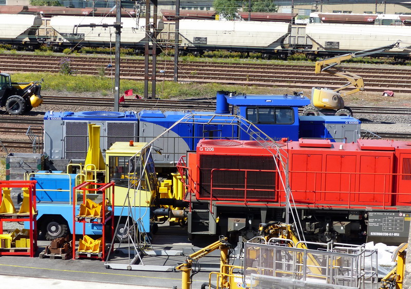 Voici la Vossloh G 1206 BB 500 1685 - 92 87 0061 736-0 F-VFLI - BB61736 à la Socofer de SPDC pour la maintenance