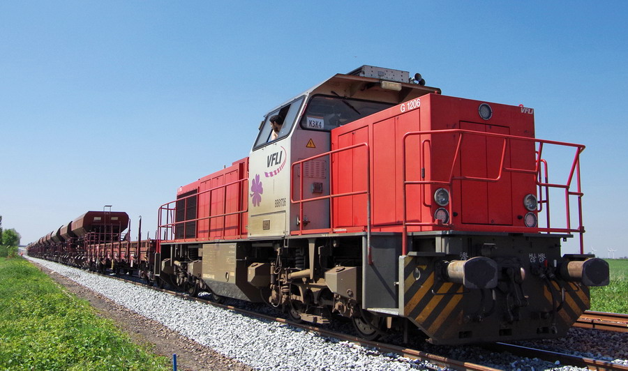 sur une rame de Trémies D12 de ballast