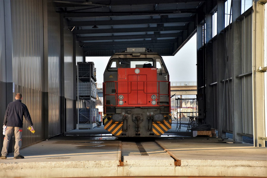 elle arrive par la voie qui est sous le hall pour le pont transbordeur puis une des portes d'entrée de l'atelier IMATEQ