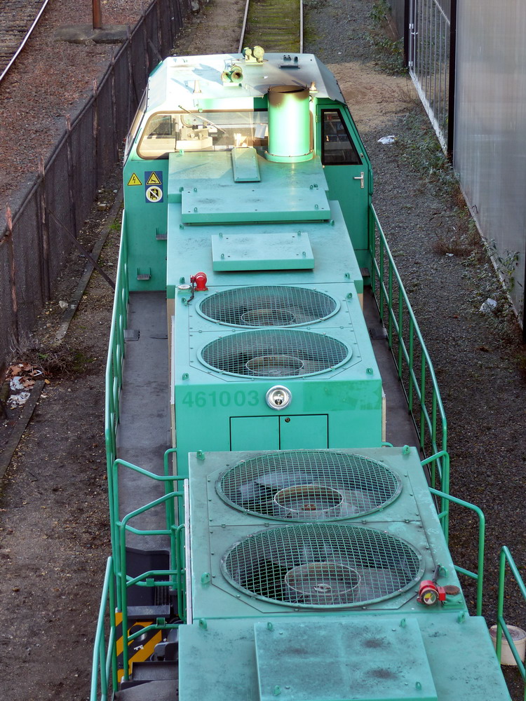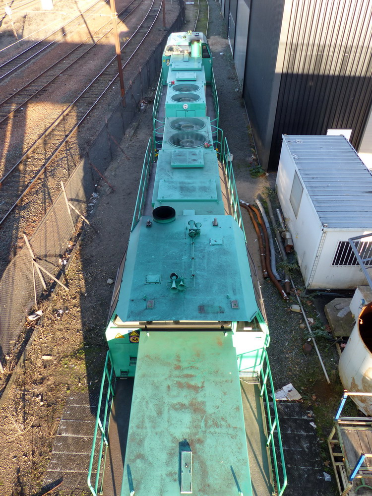 Voici des photos de Thierry Mazoyer à l'arrivée du TM sur le triage des Aubrais (45) le 14 janvier 2018 en provenance de Strasbourg Port du Rhin avec les 4 nouvelles machines Vossloh DE 18 pour Eiffage ERS