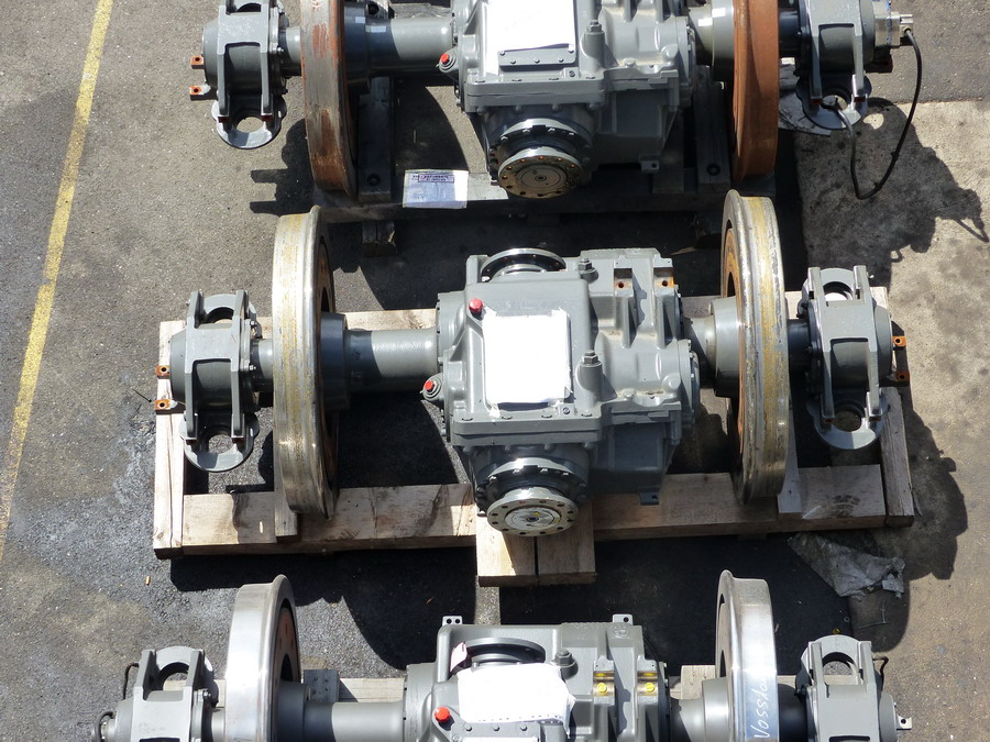 moteur et les essieux neuf pour changement sur les bogies par la suite à l'extérieur de l'atelie