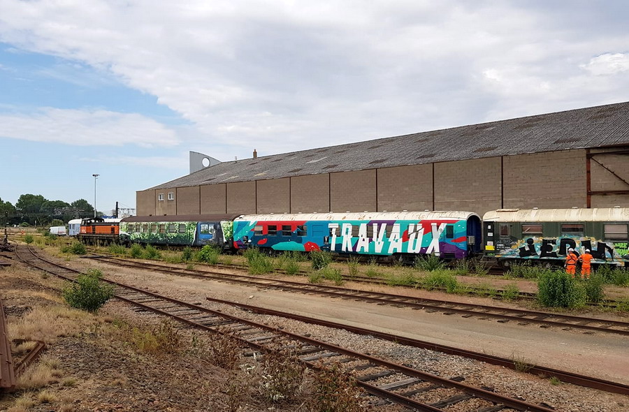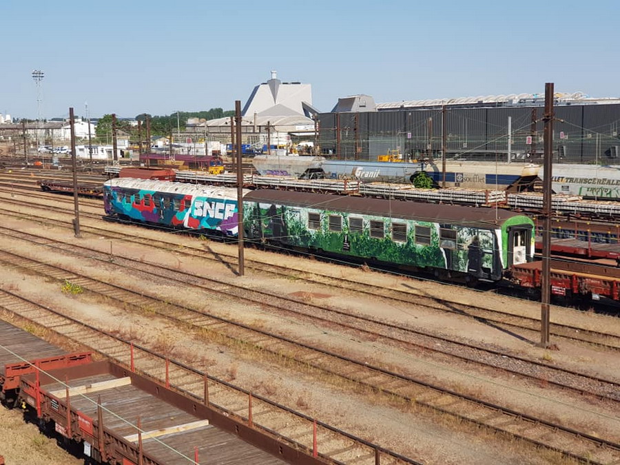 la troisième voiture la 80 87 979 3 408-6 Uas H 55 0 - SNCF-TR en queue manoeuvre pour son dernier voyage pour le hall de l'ex SERNAM