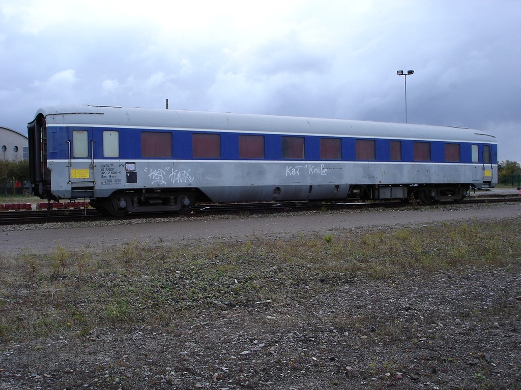 On retrouve la voiture de cantonnement 80 87 979 2 600-9 Uas H80 0 SNCF-RS - gare d'attache St Dizier