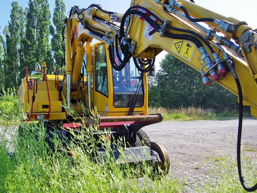 Voici la Pelle Rail route Atlas 1404 KZW n°241Z301929 de 2015 pour ETTB location TP n°460 avec marquage MZ