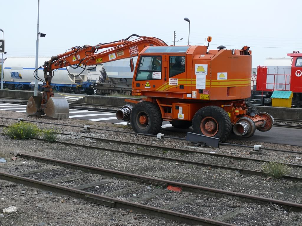 Voici une pelle Colas Rail en gare de Nangis. Elle intervient en ce moment au PN et en gare pour changer la voie, dans le cadre du RVB de Gretz à Romilly sur Seine.