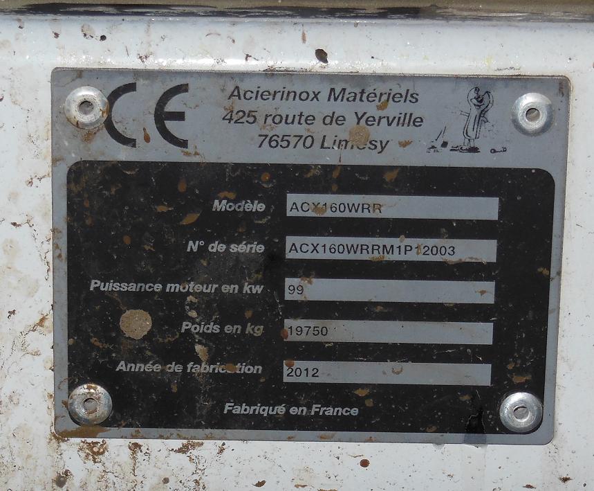 Je pense que cet exemplaire appartient à THN - Transport Haute Normandie (Location de matériel TP - 76) dont on aperçoit l'autocollant au dos de la machine. A confirmer car la profusion de marquages Acierinox on peut avoir quelques doutes.