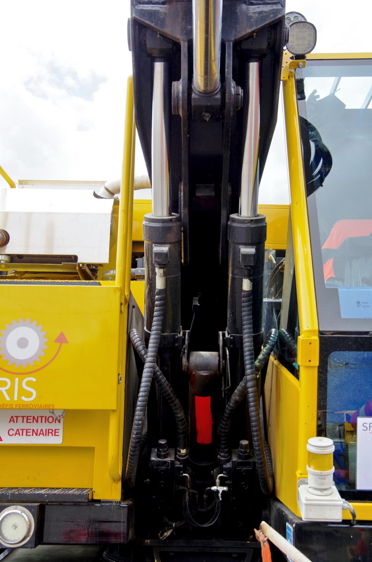 Geismar, fabricant français de matériel ferroviaire, fabrique des pelles rail-route depuis quarante ans. Étrangement, ces matériels sont relativement peu présents sur le territoire national. La KGT, son modèle de base, a été vendue à des centaines d’exemplaires en Russie, aux États-Unis, mais très peu chez nous. L’entreprise a décidé de corriger cet état de fait. La première étape a été d’aller à la rencontre des opérateurs français pour analyser leurs besoins… et ensuite répondre à cette demande par un matériel approprié. Voici donc la KGT-E, une nouvelle-née, sortie cette année, agréée par la SNCF, et qui devrait satisfaire ETF, TSO, Colas Rail et autres entreprises du secteur. « Notre KGT était surtout un engin de levage et de manutention. Nous avons amélioré ses capacités en terrassement », résume Hugues Heintz, à la direction technique de Geismar. Comment ? En ajoutant une volée variable sur l’équipement qui, du coup, devient plus maniable et apte à travailler au plus près du châssis. « Nos clients ont également besoin de puissance pour l’entraînement des accessoires », note Hugues Heintz qui cite, entre autres, les blocs de bourrage. Du coup, la ligne hydraulique auxiliaire dispose de sa propre pompe, et la puissance du moteur a été augmentée pour se situer à 129 kW, ce qui est beaucoup pour un engin de 23 t. Cependant, la KGT-E conserve ce qui fait la spécificité d’un engin fabriqué par un spécialiste du matériel ferroviaire : une solidité et une longévité à toute épreuve. « Certaines de nos pelles ont plus de quinze ans et travaillent encore. »