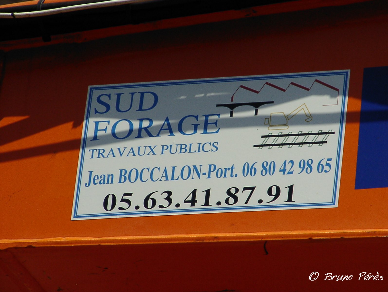 J'ignore à qui elle appartient. Je peux simplement indiquer qu'un autocollant de Sud Espace TP est apposé sur ses flancs. Pelle en location ?