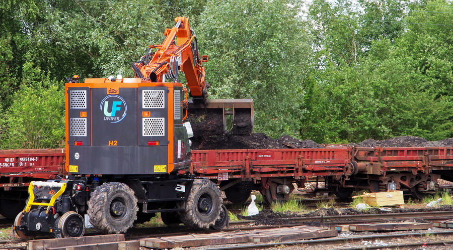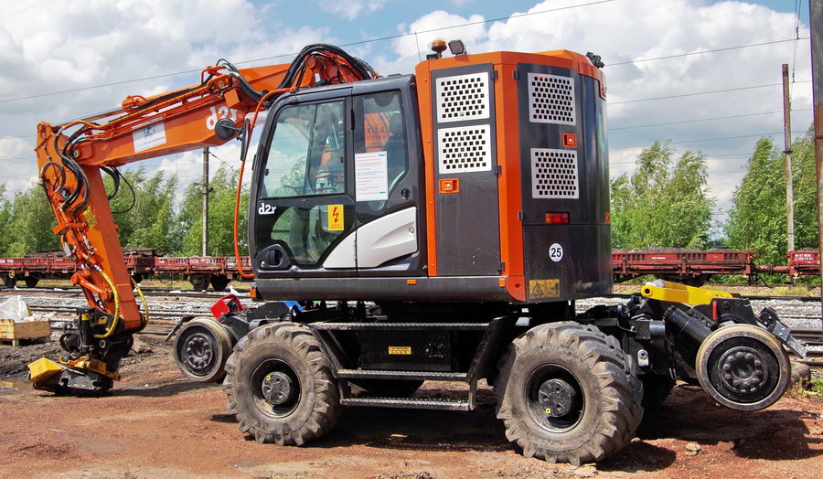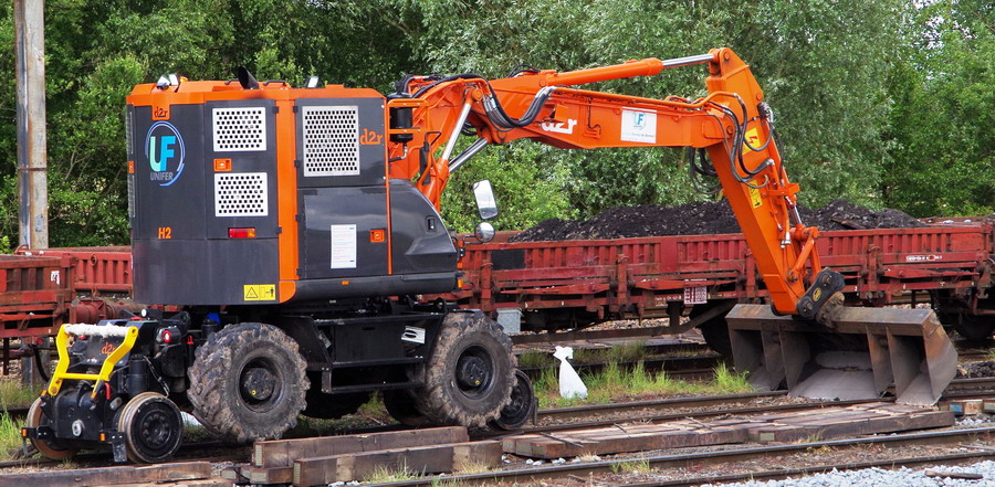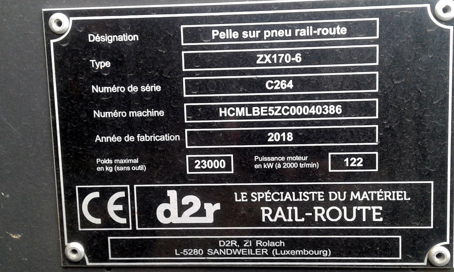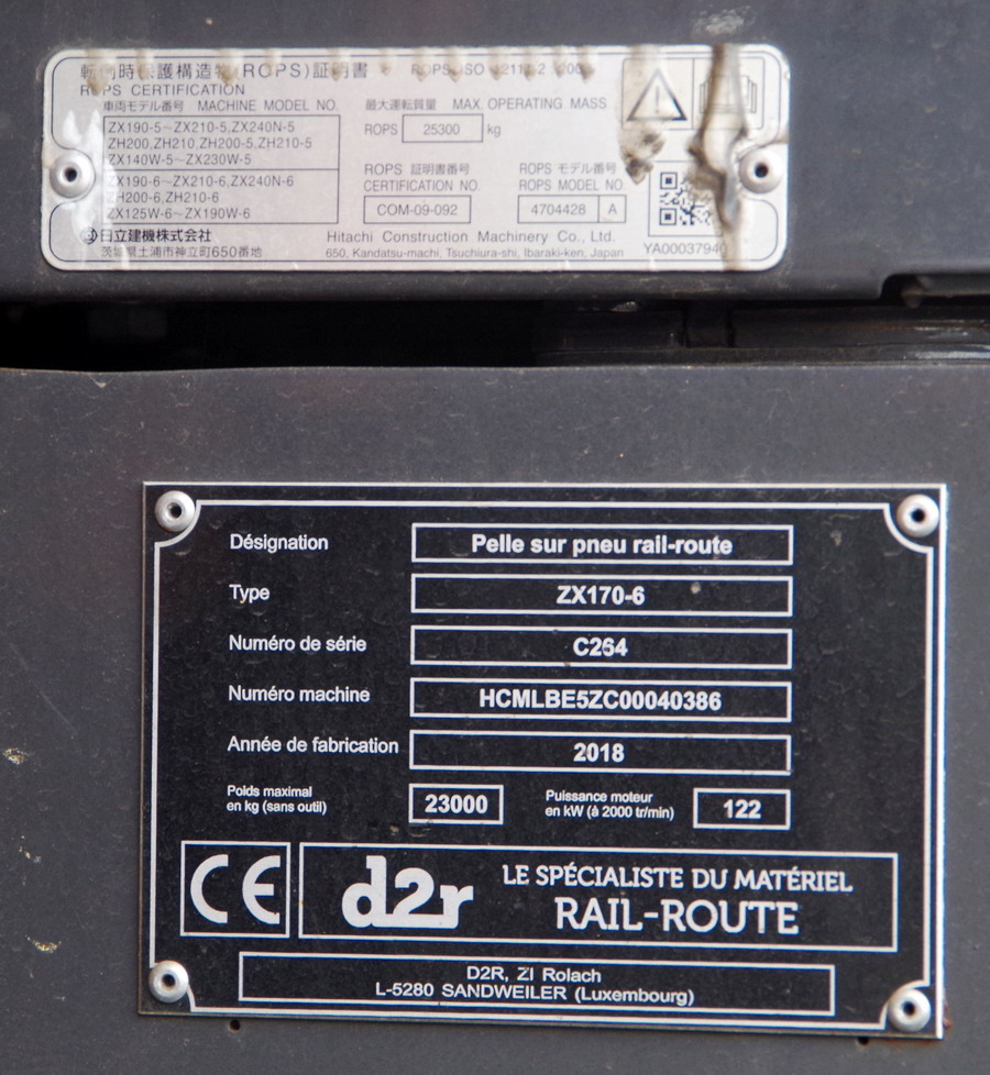 Une Pelle Rail route D2R de type ZX170-6 n°HCMLBE5ZC00040386 série C264 de 2018 pour UNIFER parc n°H2