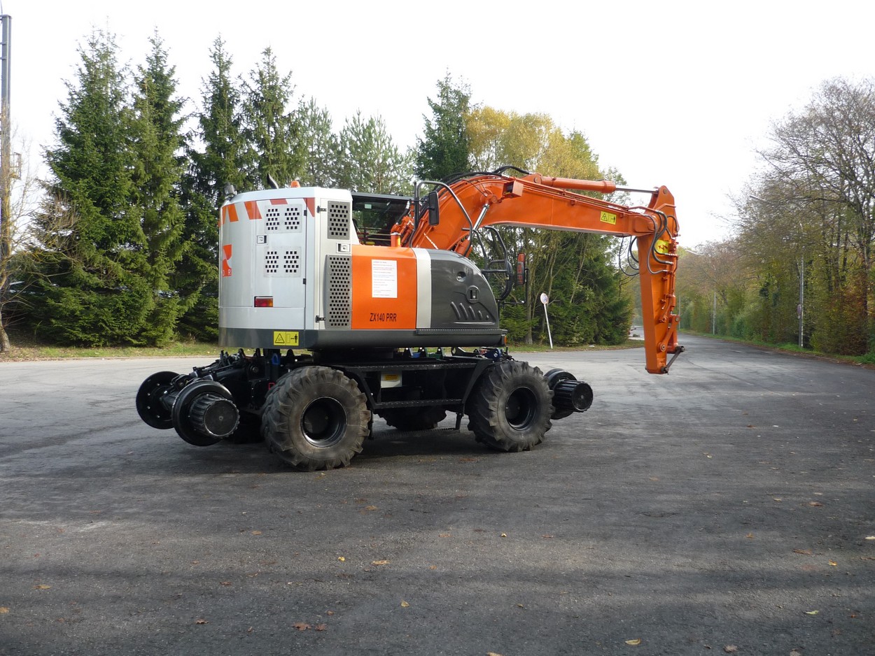 Voici la nouvelle pelle rail route de D2R une ZX140 PRR elle est équipé de tambours sur les lorries et d'une double cabine.