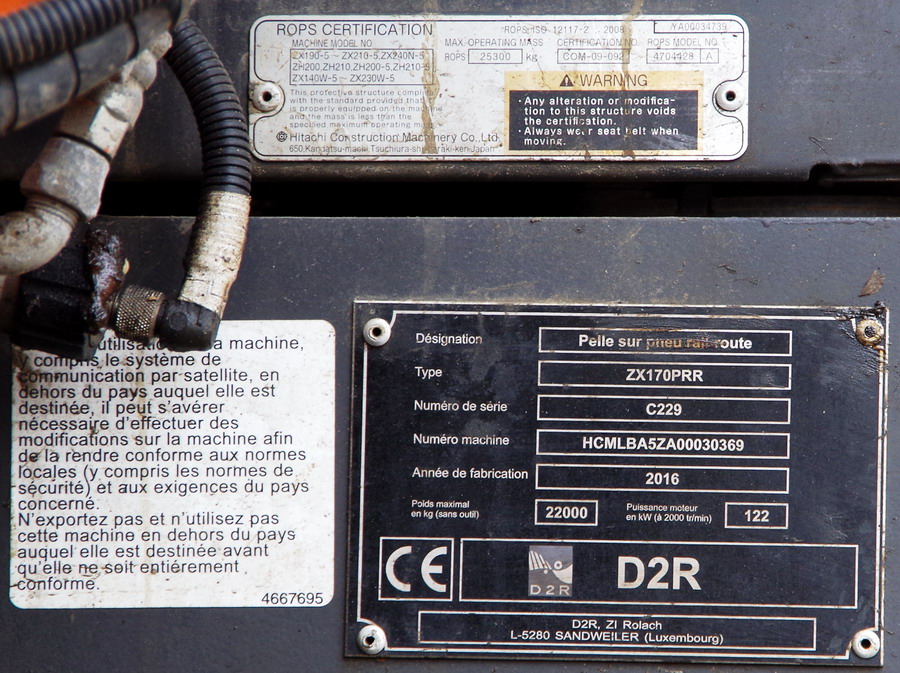 Voici une nouvelle : Hitachi D2R - ZX170 PRR n°HCMLBA5ZA00030360 série C229 - 2016 ENCO