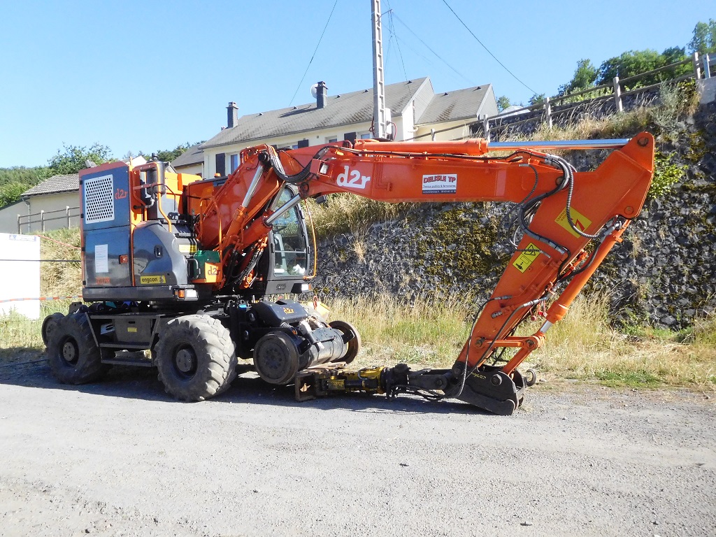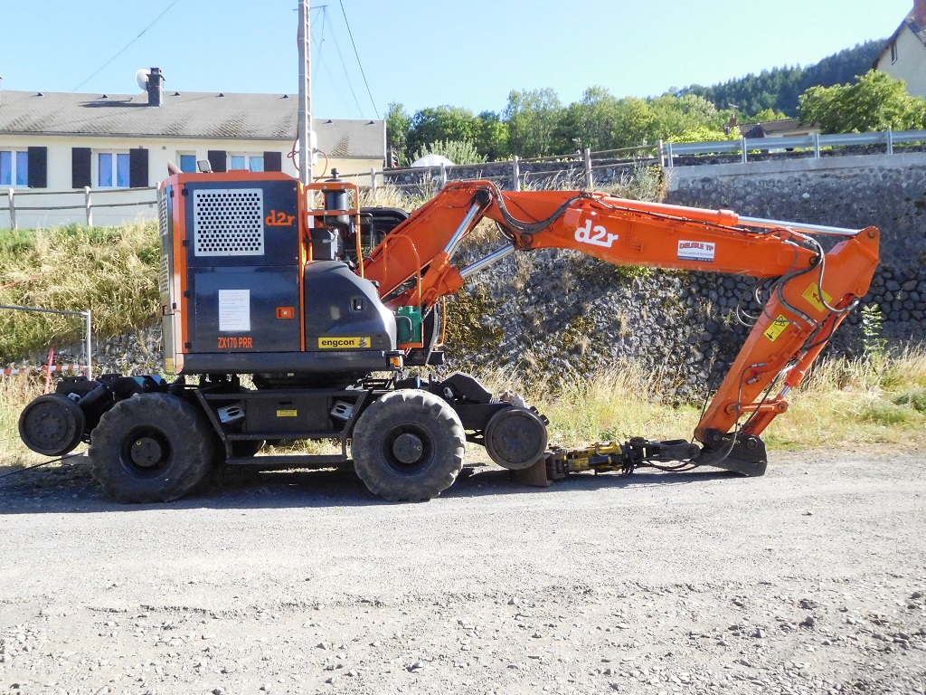 Revoici cette Pelle en gare du Lioran cette fois-ci, dans le cadre des travaux du CPER Aurillac-Arvant en Juillet 2022 :