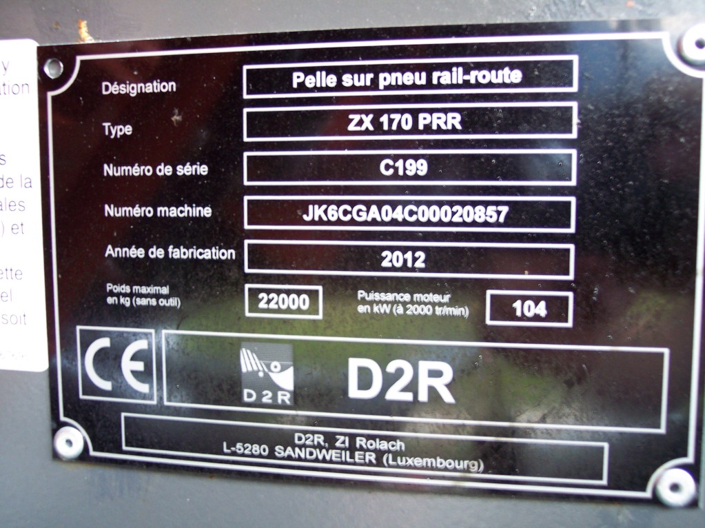 voici la pelle D2R ZX 170 PRR agrément de travail n° DPI 12084 validité 31/05/2017