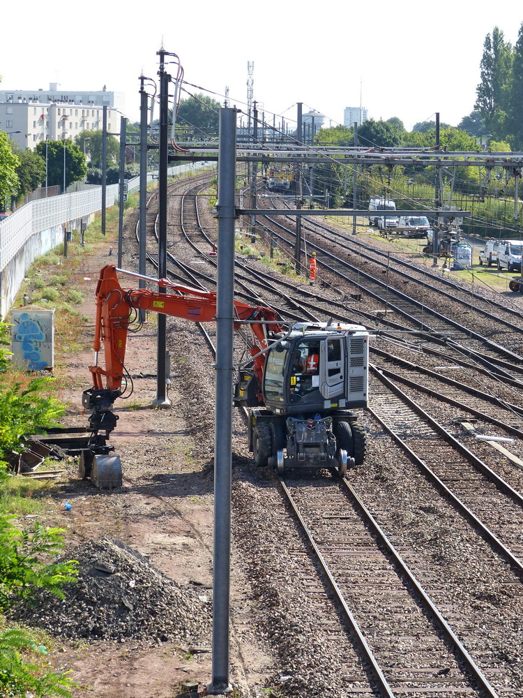 les 2 voies de gauche pour la gare de Tours elle s'occupe de récupérer les traverses brulées sous le pont SNCF