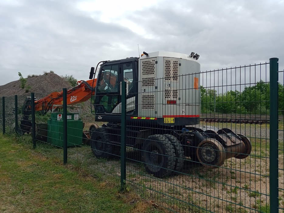 sur le chantier de la gare de SPDC (37) avec une autre Pelle Hitachi d2r ZX 170 PRR d'Aquitaine Rail n°1 des photos sur le lien