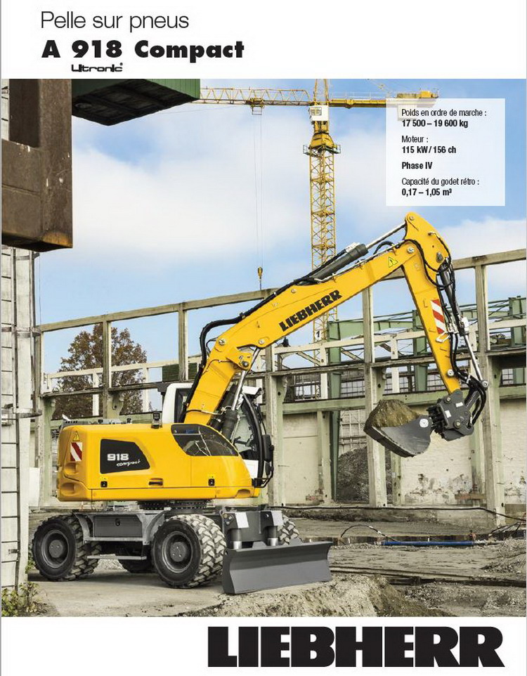 et un PDF sur la Liebherr A 918 Compact avec pneus jumelés uniquement route