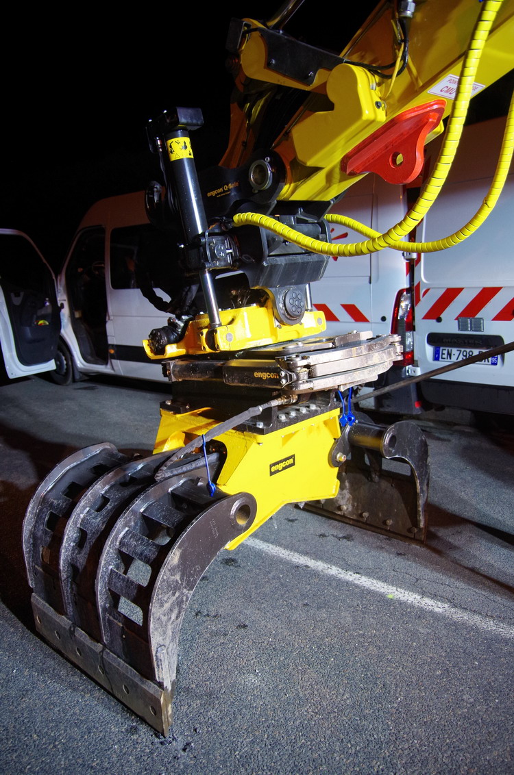 la Pelle est équipée d'un tiltrotateur EC 233 d'Encon et d'un grappin type SK15 série n°P-29009 - 05-2017