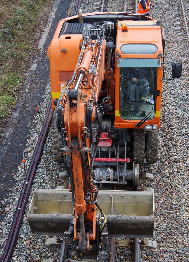 Pour la mise en place d'une sous couche géocomposite drainante par les équipes de Colas Rail,