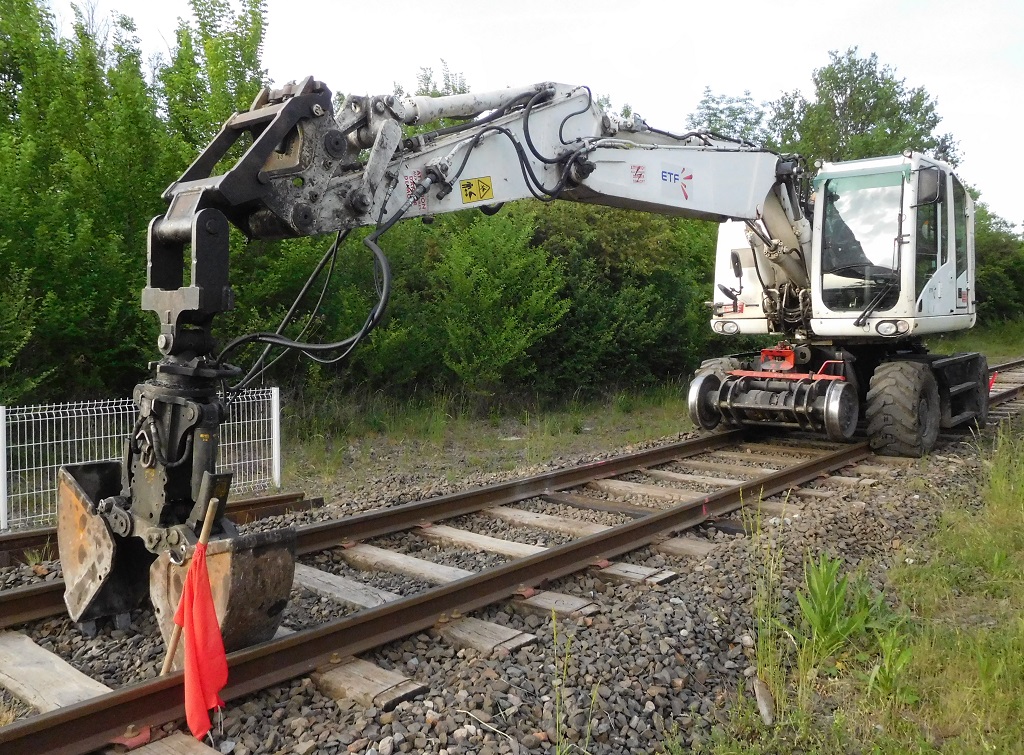 Après plusieurs années de service, on la retrouve sur un chantier de remplacement de traverses sur la ligne de l'Aubrac en Août 2021.