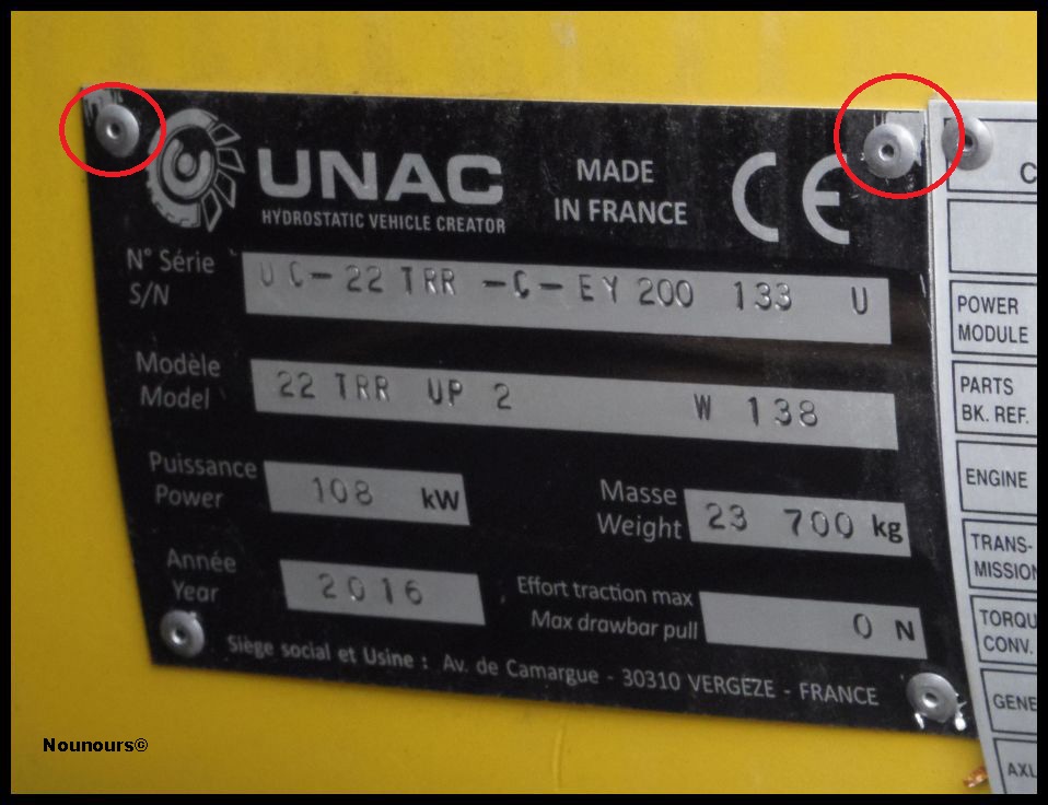 En zoomant bien, on peut apercevoir quelques écritures à côté de la plaque constructeur :