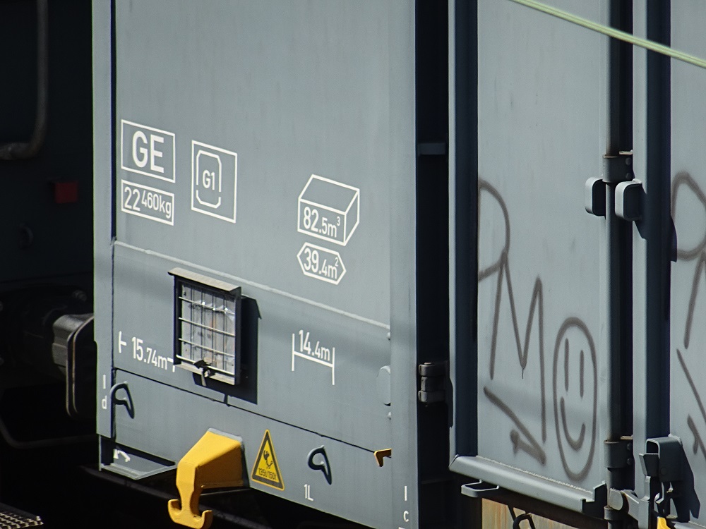 SNCF RESEAU commence a utiliser des wagons tomberaux de location du parc Ermewa de type Eanos , ici les wagons gris . St Pierre des Corps avril 2023.