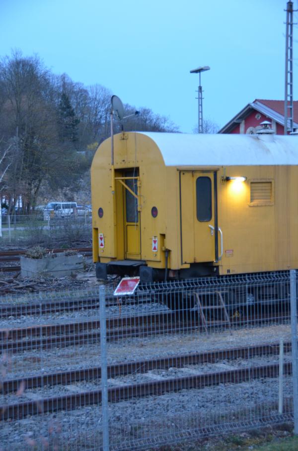 voici la voiture de cantonnement qui était avec les deux engins DB BahnBau présents dans "ma" gare aujourd'hui. Il s'agit d'une ancienne voiture voyageurs de l'ex-RDA.