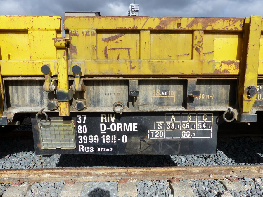 Voici le wagon plat 33 80 3999 188-0 Res RIV D-ORME de la société On Rail sur le site de Ferrotract à Saint Pierre des Corps