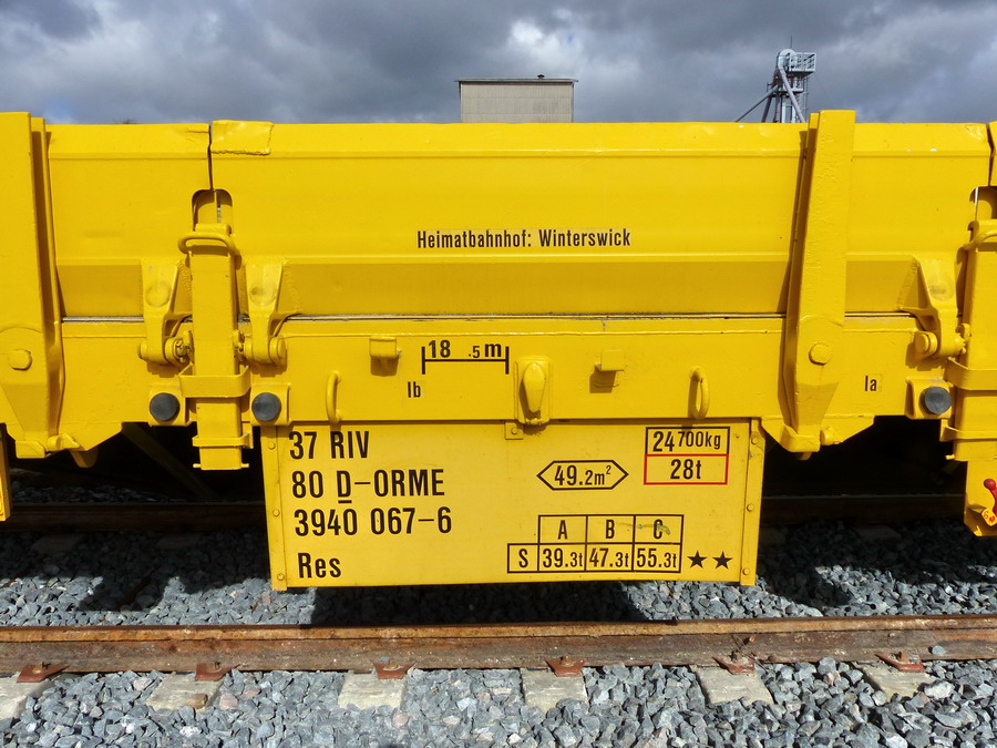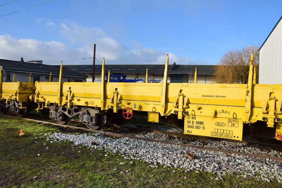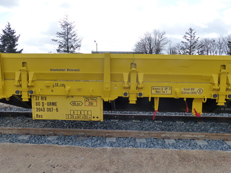 Voici le wagon 37 80 3940 067-6 Res RIV D-ORME de la société On Rail Gmbh (Allemagne) pour la société de location de wagons M.F.I sa (Matériel Ferroviaire et Industriel) de Strasbourg qui est une société spécialisée dans l'achat-vente, la location,