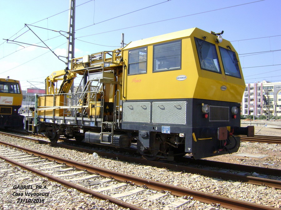Voici la Draisine Geismar VMT 865 C GR n°1074 à Rabat Agdal le 20-11-2015 pour l'inspection des caténaires avec grue pour