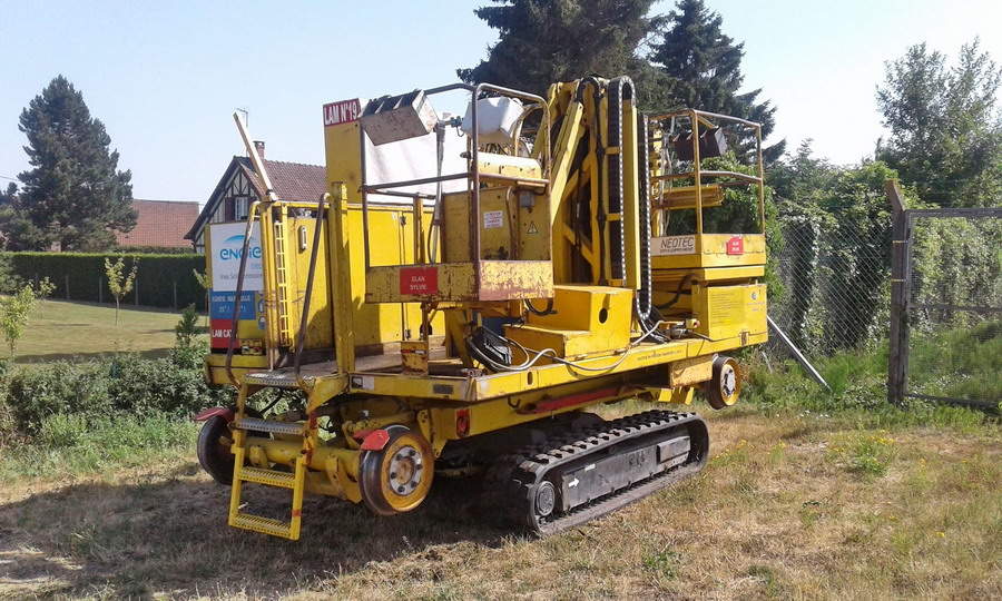 Aprés avoir glané quelques informations ici et là auprés du personnel, il s'avére que ce genre de machine est beaucoup mieux que ceux qui sont équipés de roues, avec les chenilles "escalader" les banquettes devient un jeu d'enfant et plus besoin des cales et les deux nacelles sont beaucoup plus grandes.