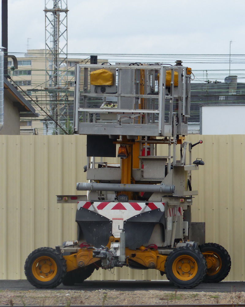 Le voici sur un chantier à Tours sur les lignes pour Nantes, Le Mans et Vendôme avec 2 autres 4'Axe le TR 61 au milieu et le TR 150 à droite