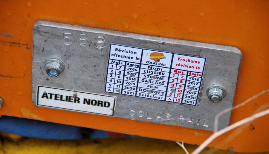 Clipseuse de type 34.01 de Robel Réf 825 990 0026 n°34.01-0451 de 2014 pour Colas Rail 588 atelier Nord