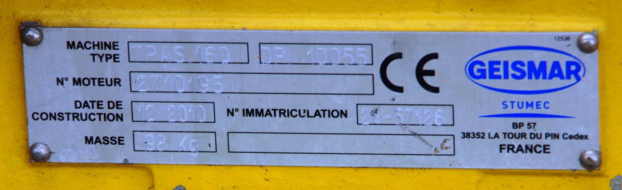 voici une Tirefonneuse Geismar Stumec avec assistance hydraulique de Type Tpas 160 n°21-57126