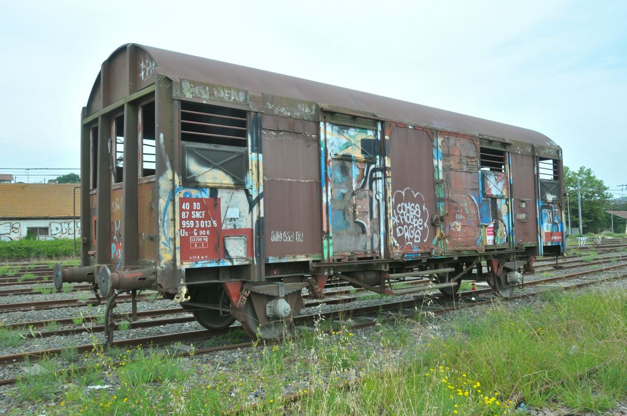Voici le G90 - 40 87 959 3 013-5 - SNCF-BD l'été 2014 en Boucau (et ... en un état pitoyable).