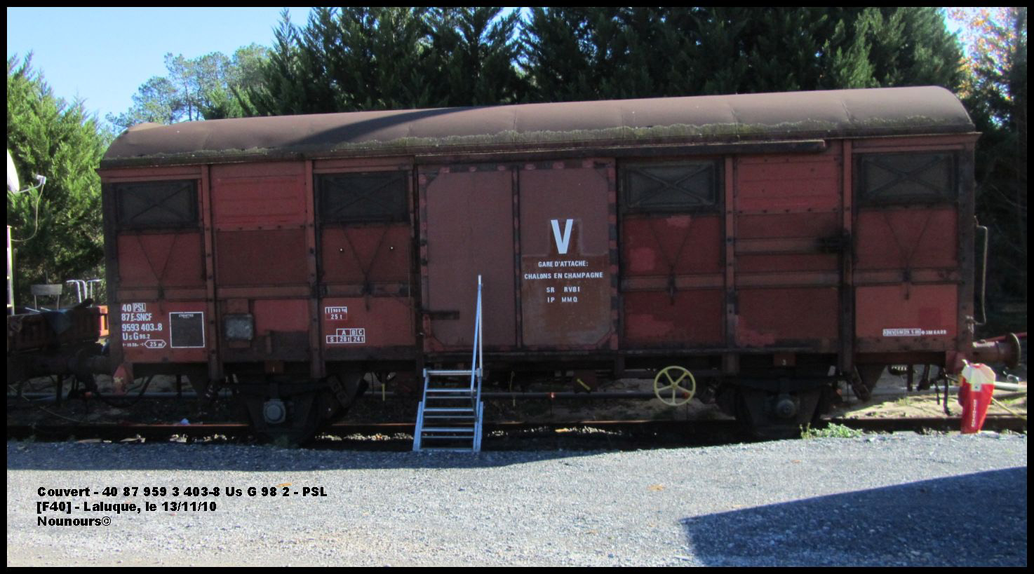 Voici le wagon 40 87 959 3 403-8 Us G 98 2 F SNCF-PSL - Point d'attache Châlons-en-Champagne