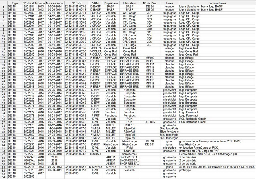 et la liste de toutes les DE 18 en sortie d'usine Vossloh