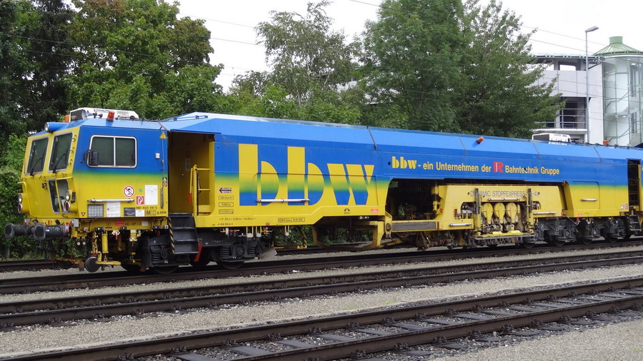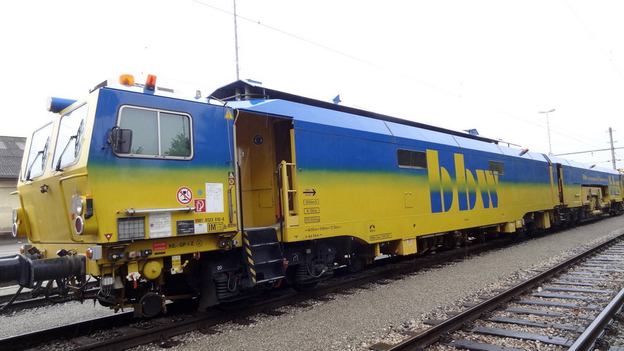 Voici la Bourreuse de Plasser & Theurer de type DYNAMIC STOPFESPRESS 09-4X - 99 81 9123 010-6 A-BBW (Bahnbau Wels (Rhomberg Sersa Rail