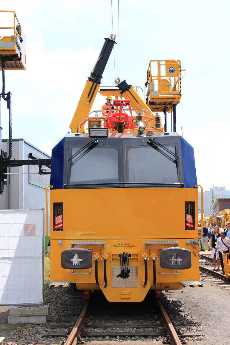 Voici la nouvelle Draisine à plateforme élévatrice sur le stand de Plasser & Theurer pour l'exposition Ferroviaire IAF Münster 2017 en Allemagne